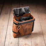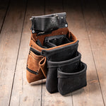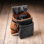 Our modular system is designed with flexibility in mind. Auxiliary bags, tool clips, and add-ons can be attached using leather loops, Chicago screws, or metal clips, depending on the accessory.