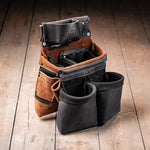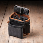 An upgraded version of the streamlined SLT with added organization. Built for framing, forming, and other demanding tasks, Features a high forward-facing tape pocket with a 2-slot bit index, a 7” rafter square sheath, and a diagonal nail puller/flat bar sheath. A divider with one large and two small auxiliary loops provides efficient storage for fasteners and tools.