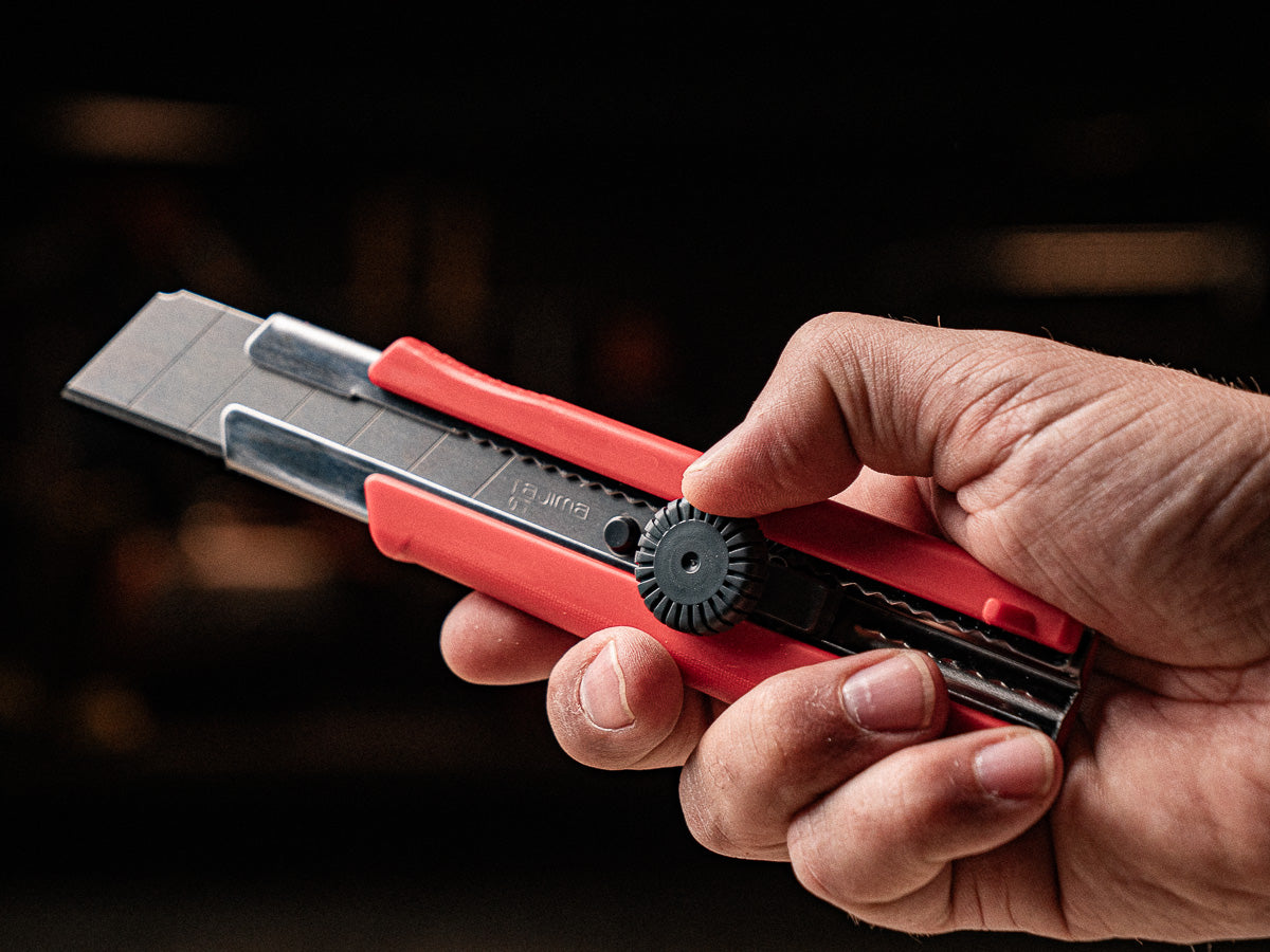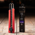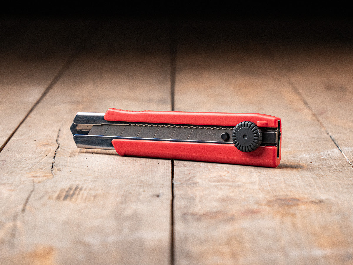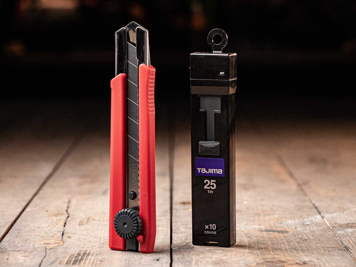 This is Tajima's extra heavy duty 1" utility knife. An extra thick elastomer grip, "Rock Hard" blade technology, multi step sharpening, Japanese tempering, premium grade steel, and dial blade lock, makes this knife a durable and reliable addition to your every day carry.