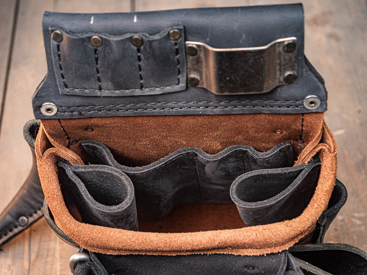 Your bags may feel stiff at first—that’s on purpose. Leather stretches over time, and we build our bags snug so they don’t end up loose and sloppy after a few months. Give it 2–3 weeks of daily use, and it’ll mold to your tools and the way you work.
