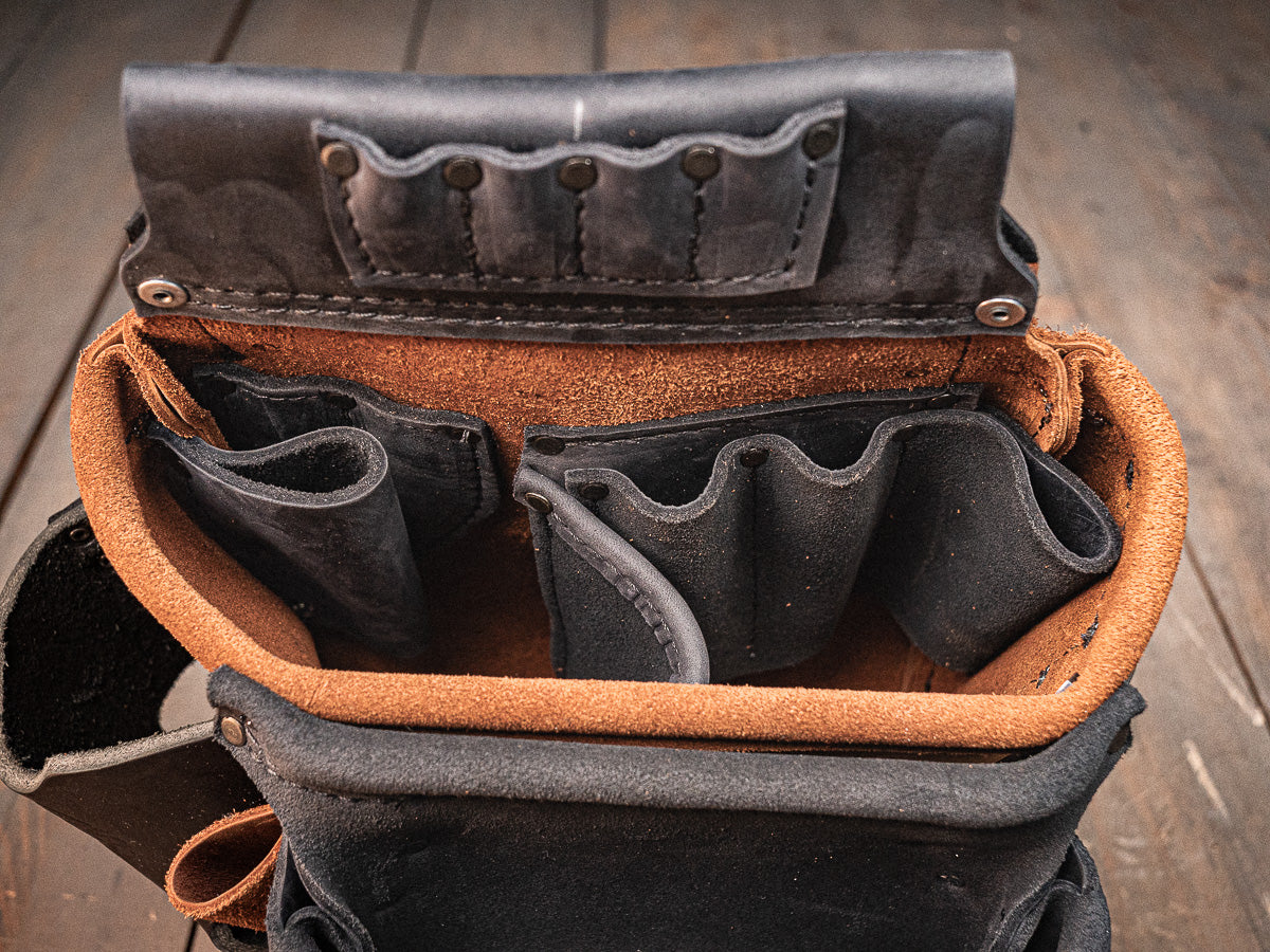Your bags may feel stiff at first—that’s on purpose. Leather stretches over time, and we build our bags snug so they don’t end up loose and sloppy after a few months. Give it 2–3 weeks of daily use, and it’ll mold to your tools and the way you work.