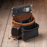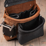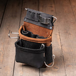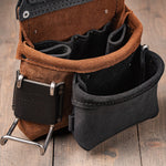Our modular system is designed with flexibility in mind. Auxiliary bags, tool clips, and add-ons can be attached using leather loops, Chicago screws, or metal clips, depending on the accessory.