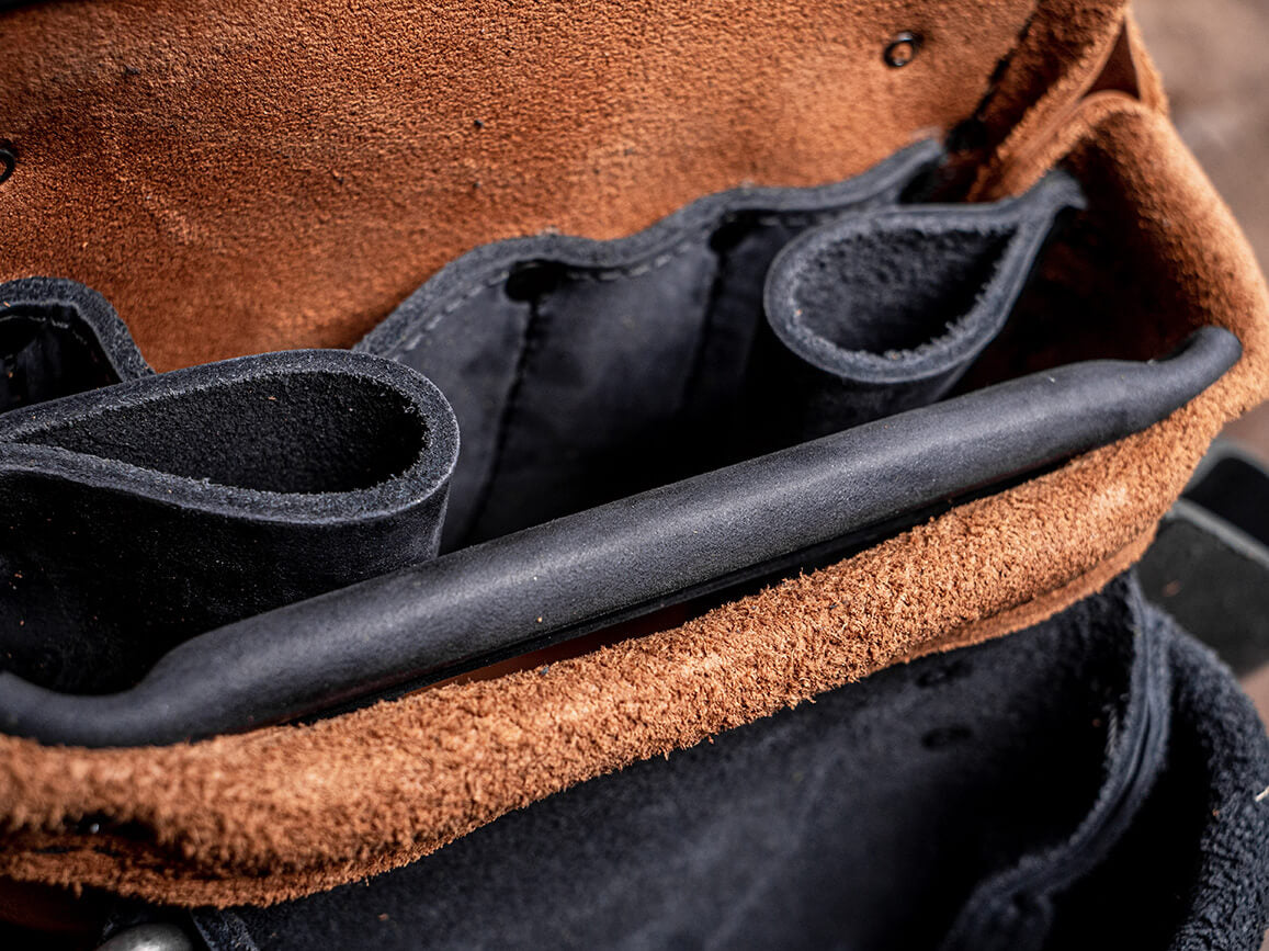 Your bags may feel stiff at first—that’s on purpose. Leather stretches over time, and we build our bags snug so they don’t end up loose and sloppy after a few months. Give it 2–3 weeks of daily use, and it’ll mold to your tools and the way you work.